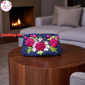 এই চমৎকার ফুল এমব্রয়ডারড হ্যান্ডব্যাগটি প্রস্তুত করা হয়েছে সূক্ষ্ম হাতে কাজের মাধ্যমে। নীল রঙের ব্যাগের উপর রঙিন ফুলের নকশা এটিকে করে তোলে একেবারে নজরকাড়া।