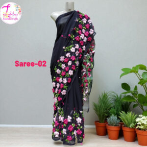 Shipping Charge Advance.রিবন এমব্রয়ডারি করা ওয়েটলেস জর্জেট শাড়ি, কাস্টমাইজড করা যাবে।