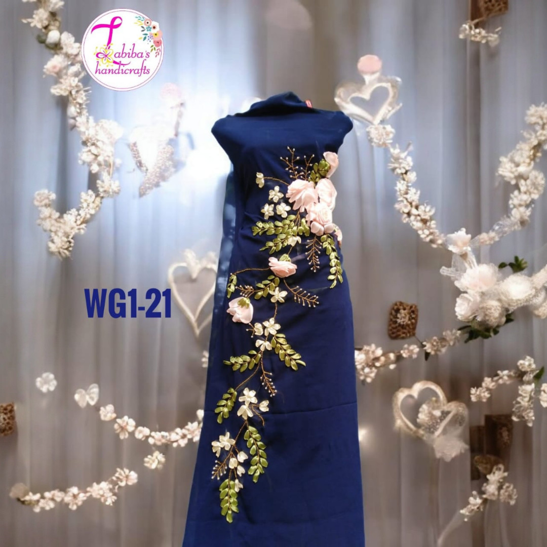 এই ওয়ান পিসটির সামনে দিকজুড়ে করা হয়েছে দৃষ্টিনন্দন রিবন এমব্রয়ডারির ফুল ও পাতার ডিজাইন, যা একে দিয়েছে একটি সৌন্দর্য ও স্টাইলের দারুণ ভারসাম্য। হালকা ও আরামদায়ক হওয়ায় এটি দিনভর পরার জন্যও উপযুক্ত।